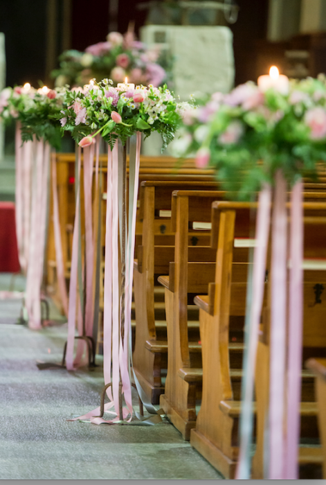 Fiori rosa, bianchi e verdi, ghirlande di edera e nastri saranno dovunque e la luce delle candele sarà nostra complice per rendere tutto ancora più intimo e accogliente.