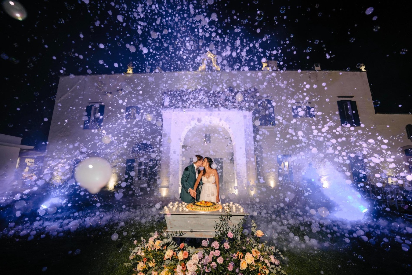 La serata è esplosa di emozioni con lo spettacolo di pizzica, che ha trascinato gli sposi e tutti gli invitati in un momento di pura tradizione pugliese. E poi, la musica: un susseguirsi di generi, lingue e ritmi, dal quartetto d’archi in chiesa fino al VioSax per il dopofesta, come un viaggio sonoro attraverso paesi, epoche e culture.