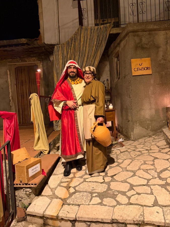 Tanta emozione e tanti ricordi felici hanno fatto crescere in noi, la voglia di ridare vita a luoghi del paese che forse erano quasi dimenticati. Il Presepe Vivente, ma in particolare la rappresentazione della Natività, incarna la fede, la tradizione e la connessione tra le persone e la loro spiritualità. Un’esperienza che parla direttamente al cuore. Molti i figuranti, adeguatamente vestiti con abiti che rievocavano i tempi antichi, supportati dalle musiche degli zampognari e dalla voce incantevole di Delia Traclò e dal coordinamento server del professore Rocco Saccà. Alle h. 18:00 si è aperto il percorso per ammirare le varie postazioni: iniziando il percorso dalla parte bassa del paese tra case antiche, catoi (le tradizionali cantine di Palizzi, grotte, palmenti, viuzze strette tra rocce e le vecchie abitazioni. Poi ecco l’arrivo dei Re Magi alla grotta a cui ha fatto seguito sulla piazza, la rappresentazione della vita di San Giovanni Battista a cura dell’associazione culturale dei Mattanza (patrocinata dal comune di Palizzi).
